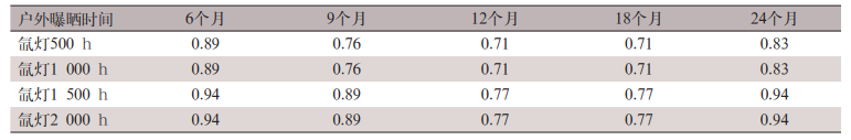 根據(jù)所得評(píng)估結(jié)果的數(shù)據(jù),我們可以計(jì)算自然戶外曝曬與氙燈試驗(yàn)室加速測(cè)試方法之間的相關(guān)系數(shù) rs。該相關(guān)系數(shù)指的是利用兩種不同的測(cè)試方法對(duì)一組樣品進(jìn)行測(cè)試,所得試驗(yàn)結(jié)果之間的相關(guān)性。