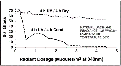 圖8: 在光照冷凝條件下VS光照干燥條件下的老化效果對(duì)比