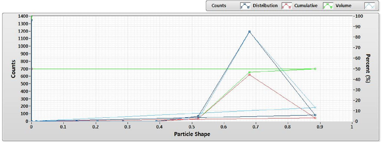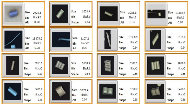 CALPAS能夠提供3種格式的分析報告。一種是雜質(zhì)異色分析報告,另外兩種是雜質(zhì)粒子異形分析報告和所有粒子尺寸形狀分析報告。圖片8顯示所有粒子尺寸和形狀分析結(jié)果,這種格式的報告和只顯示異形信息的雜質(zhì)粒子異形分析報告有關(guān),雜質(zhì)異形參數(shù)通過異形自定義功能進(jìn)行設(shè)定。尺寸和形狀的分類等級是同樣重要的因素,CALPAS提供用戶能夠設(shè)定尺寸和形狀分級的范圍的功能。最終,包含圖片的分析報告會提供給用戶進(jìn)行確認(rèn)。